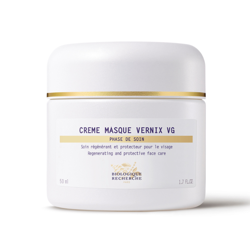 Biologique Recherche Crème Masque Vernix czerpie inspirację z mazi płodowej — substancji naturalnie ochraniającej skórę noworodka. Formuła produktu jest bogata w lipidy strukturalne (ceramidy NP, AP i EOP, cholesterol, lecytynę, skwalan oraz olej z pestek malin), które uzupełniają ubytki w warstwie lipidowej naskórka, odbudowując jej ciągłość i zmniejszając przeznaskórkową utratę wody (TEWL). Dzięki temu bariera ochronna skóry zostaje wzmocniona, a skóra lepiej chroni się przed czynnikami zewnętrznymi.