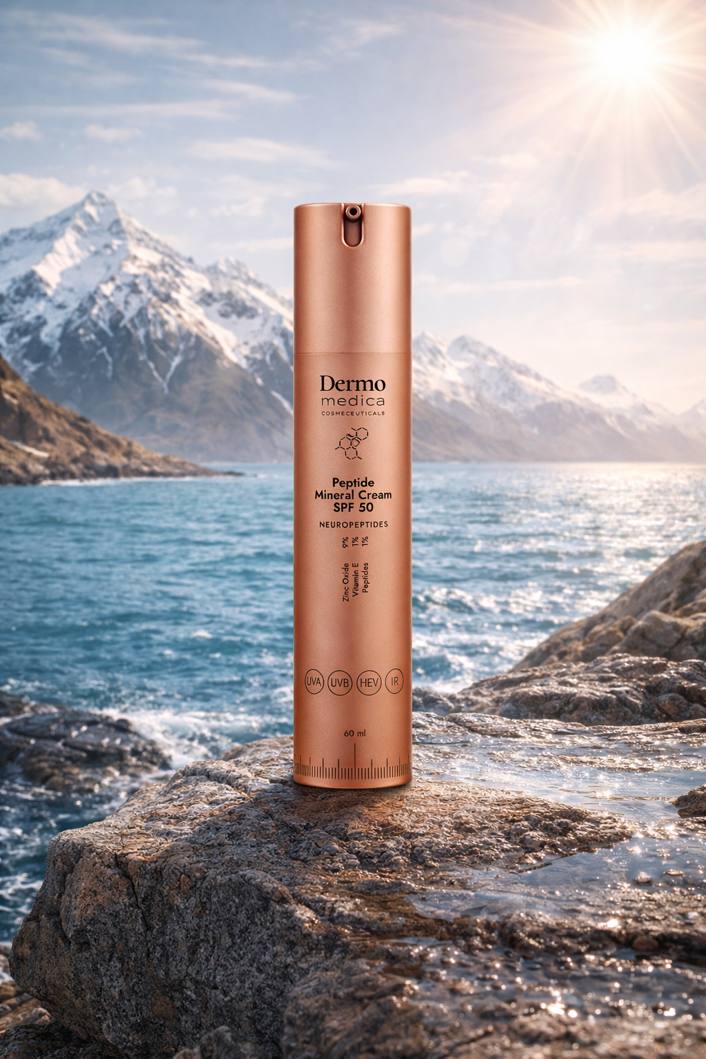 Dermomedica Peptide Mineral Cream SPF 50 to mineralny krem z filtrem UV oparty na 9% tlenku cynku, uzupełniony peptydami i witaminą E, który jednocześnie chroni skórę przed promieniowaniem UV, HEV i podczerwonym oraz wspomaga jej regenerację. Produkt jest przeznaczony dla skóry suchej, wrażliwej, naczynkowej i skłonnej do przebarwień lub rumienia.