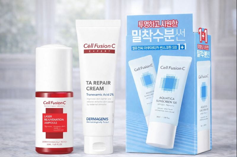 Tak – zestaw Cell Fusion C After Treatment Pro jest stworzony właśnie dla skóry reaktywnej i podrażnionej po zabiegach. Cool Down Complex łagodzi zaczerwienienie i uczucie przegrzania, a Regensea LS wspiera odbudowę uszkodzonej bariery naskórkowej.