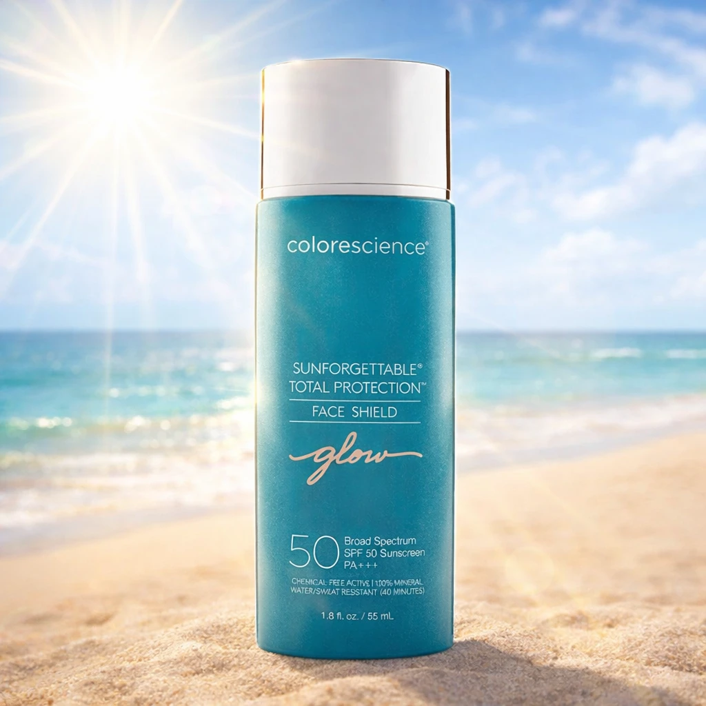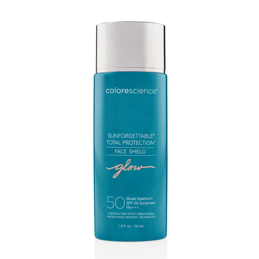 Colorescience SUNFORGETTABLE TOTAL PROTECTION FACE SHIELD SPF 50 (GLOW) minerały w emulsji do twarzy SPF50, doskonale wtapiają się w skórę dając delikatne i lekkie wykończenie 55ml