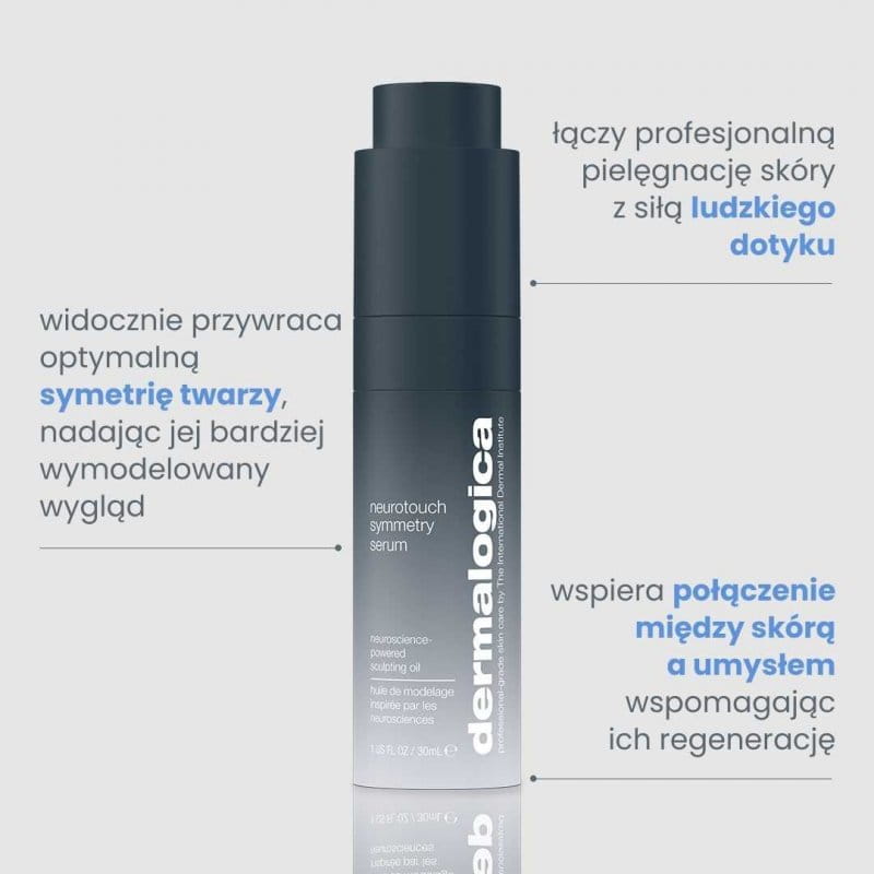 Neurotouch Symmetry Serum to olejowe serum anti-aging marki Dermalogica, łączące peptyd o działaniu relaksującym mięśnie mimiczne z bioinżynieryjnym fermentem i adaptogennymi ekstraktami roślinnymi. Przeznaczone dla osób, które chcą poprawić symetrię i kontur twarzy, unieść i ujędrnić skórę oraz wzmocnić jej barierę hydrolipidową w codziennej rutynie przeciwstarzeniowej.