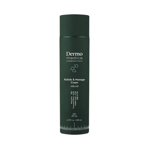 Dermomedica Kobido & Massage Cream to profesjonalny krem do masażu twarzy i ciała z sokiem z aloesu (10%), kwasem azelainowym (0,2%), ekstraktem z kurkumy (0,5%) i CBD (0,17%), który nawilża, łagodzi zaczerwienienia i wspomaga regenerację skóry. Produkt przeznaczony zarówno do profesjonalnych zabiegów manualnych (masaż kobido, masaże przeciwstarzeniowe), jak i domowych masaży twarzy i ciała.
