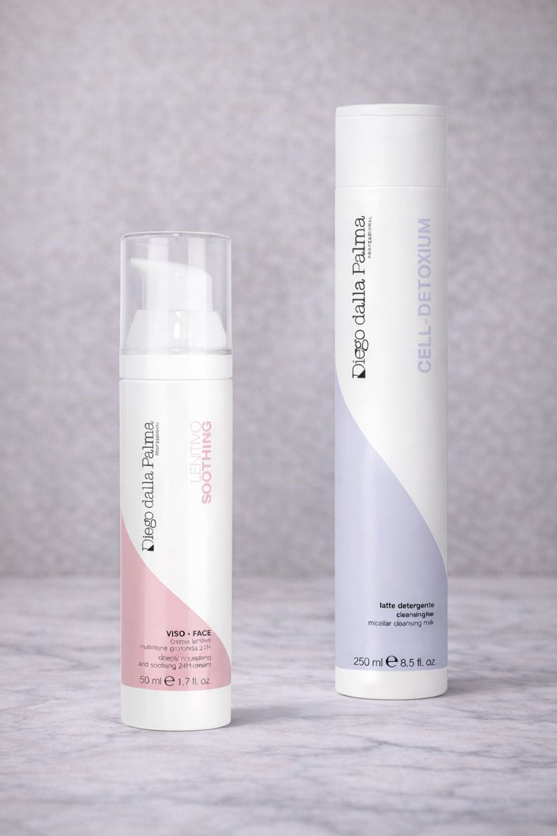 Zestaw CELL-DETOXIUM Sensitive Skin Therapy marki Diego dalla Palma składa się z toniku (250 ml) i kremu kojąco-łagodzącego (50 ml) stworzonych z myślą o skórze wrażliwej, reaktywnej i osłabionej. To propozycja dla osób, których skóra reaguje podrażnieniem i zaczerwienieniem na czynniki zewnętrzne lub zabiegi kosmetologiczne.
