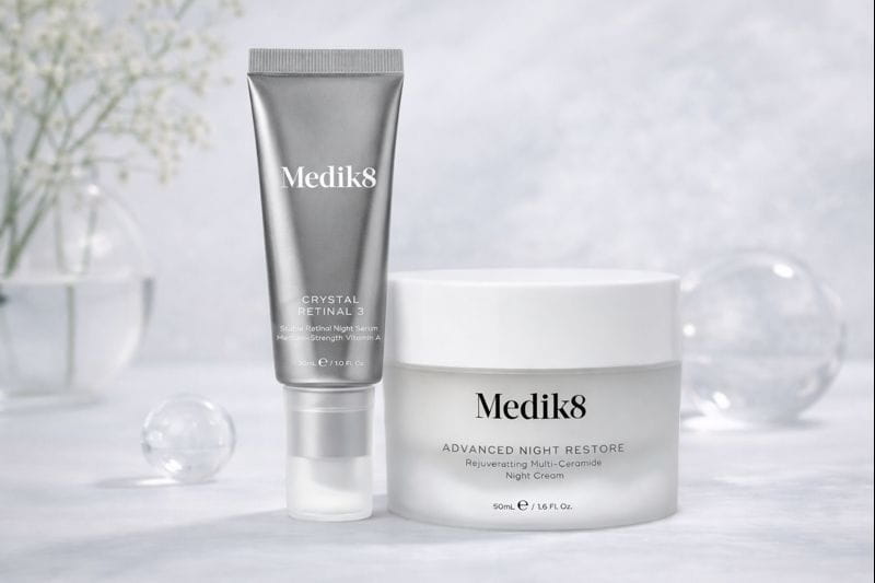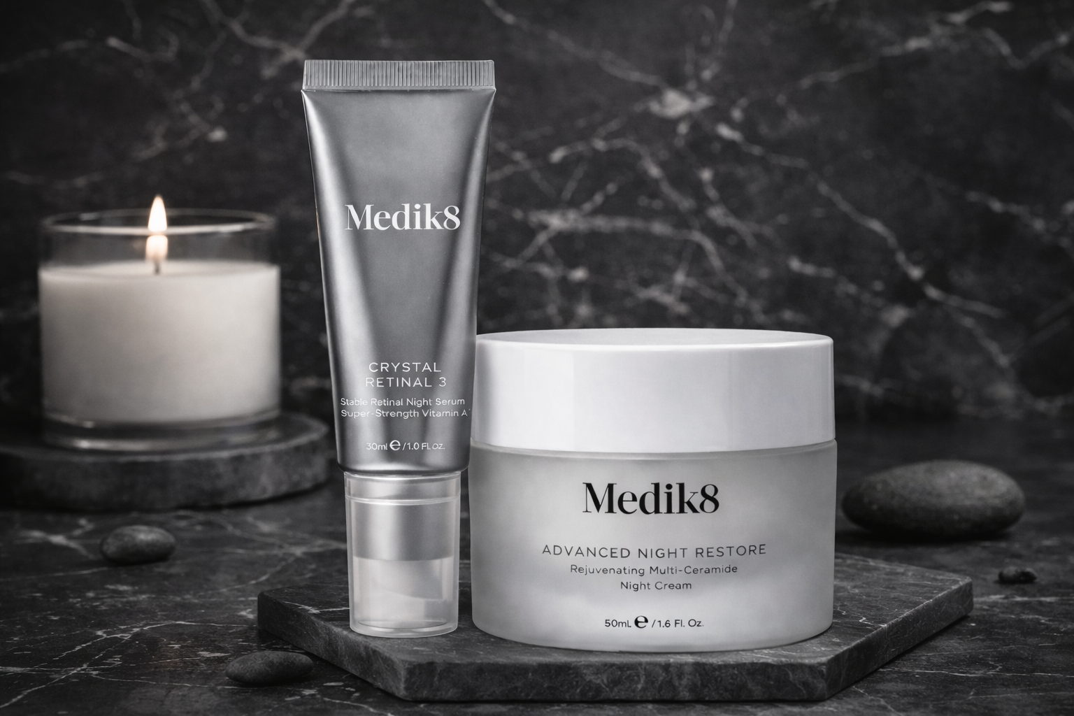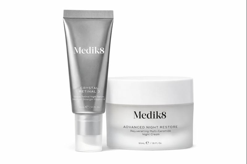 Zestaw Medik8 Crystal Retinal 6 + Advanced Night Restore to nocna pielęgnacja anti-aging łącząca serum z retinaldehydem ze wzmacniającym barierę skórną kremem regeneracyjnym. Przeznaczony dla osób, które chcą skutecznie przeciwdziałać pierwszym oznakom starzenia i poprawić kondycję skóry w ciągu nocy – zarówno dla zaczynających przygodę z retinalem, jak i tych, którzy chcą wzmocnić nocną rutynę.