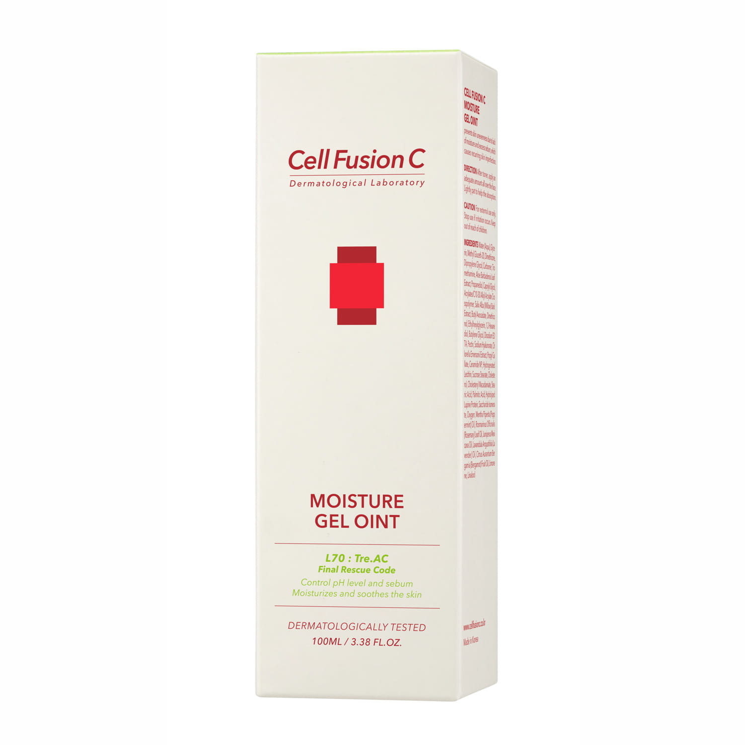 Cell Fusion C Moisture Gel Oint to lekki żel nawilżający z kompleksem Treacine™ i NEO CMS™, który reguluje równowagę wodno-tłuszczową skóry, wykazuje działanie bakteriostatyczne i wspomaga odbudowę bariery ochronnej. Produkt przeznaczony jest przede wszystkim dla skóry tłustej, trądzikowej i problematycznej, która wymaga nawilżenia bez ryzyka przeciążenia pielęgnacją.